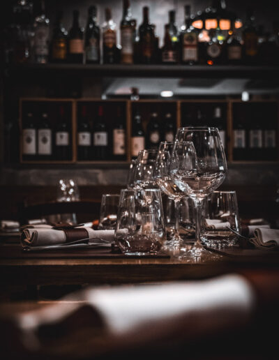 Scopri l’anima del nostro ristorante attraverso i dettagli: calici pronti per brindisi speciali, luci soffuse, ambienti accoglienti e tavole curate con attenzione. Ogni immagine racconta un’esperienza unica fatta di calore, eleganza e passione per l’accoglienza.